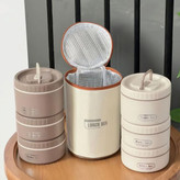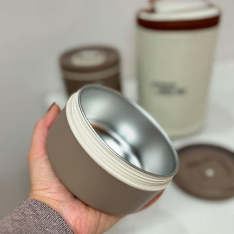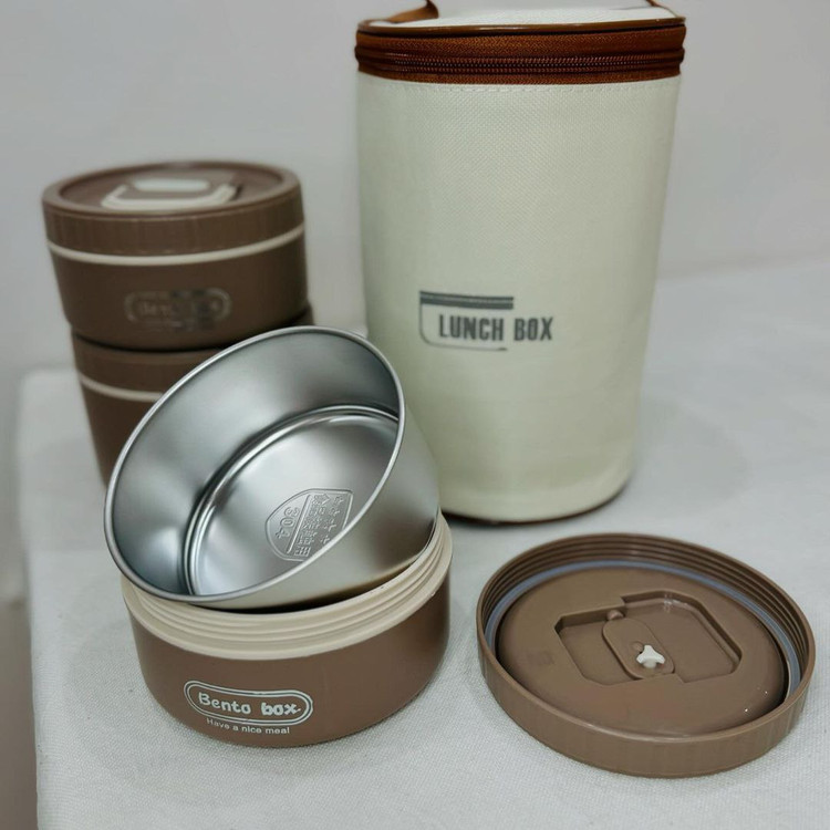 لانچ باکس ۳ تکه داخل استیل بگ دار کرم و نسکافه ای