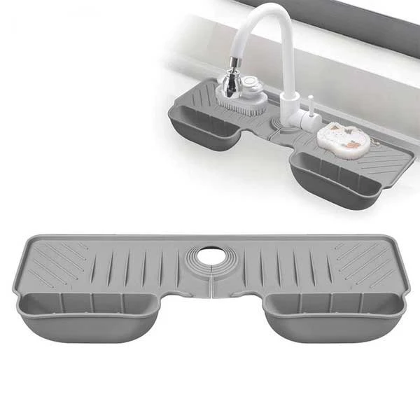 آبگیر دورشیر، یک وسیله یا پوشش محافظ است که به جلوگیری از نفوذ آب به اطراف شیر و جمع شدن آن کمک میکند. این آبگیر با هدایت آب به داخل سینک، از تجمع آب در اطراف شیر و نفوذ به زیر سینک جلوگیری کرده و عمر تجهیزات آشپزخانه را افزایش میدهد. این محصول از جنس سیلیکون با ابعاد حدود عرض 35 طراحی شده است./این محصول از سیلیکون نرم و باکیفیت ساخته شده است که به راحتی خم میشود و به شکل شیر سینک شما قالب میگیرد./طراحی خورجیندار: وجود خورجین در این آبگیر، فضایی مناسب برای قرار دادن اسفنج، برس ظرفشویی یا حتی بطری مایع ظرفشویی فراهم میکند.