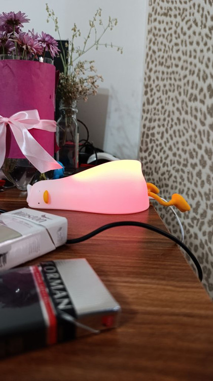 چراغ خواب اتاق کودک طرح اردک خسته، طراحی زیبا و جذابی دارد که با قابلیت تغییر رنگ به وسیله ضربه و جنس سیلیکونیاش توجه کاربران را جلب کرده است. بسیاری از کاربران از زیبایی و خوشدستی این محصول ابراز رضایت کردهاند و آن را گزینهای عالی برای هدیه میدانند. نور رنگی و امکان شارژ مجدد از ویژگیهای مثبت این چراغ خواب است.