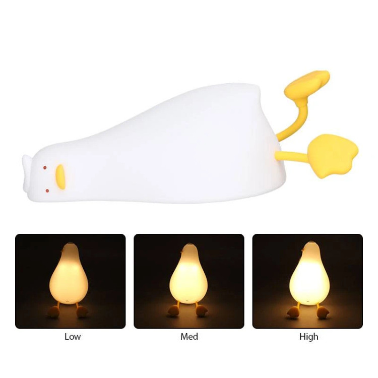چراغ خواب دكوراسيونی طرح اردك (duck) جنس سيليكوني نرم و بيسيار لطيف پخش نور LED قابليت شارژر usb قابليت هلدر براي انواع گوشي داراي ۳ حالت تنظيم و پخش نور